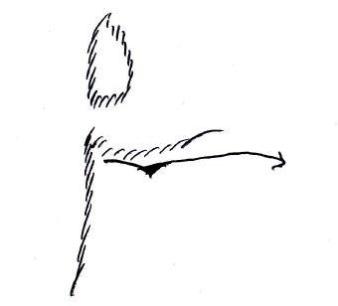F is alsof je iemand snel achter elkaar twee duwtjes geeft. Of, op een andere manier, alsof vanachter je een bal langs je wordt gegooid, je met je hand deze bal volgt, terwijl hij één keer voor je stuit en dan na nog een flink aantal meters landt.