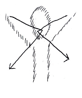 Het gebaar is als S, wel horizontaler en met een innerlijke vibratie.